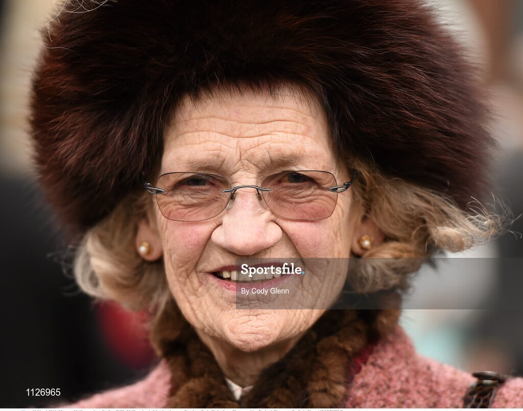 18 March 2016; Maureen Mullins, mother of trainer Willie Mullins, ahead of day 4 at the races. Prestbury Park, Cheltenham, Gloucestershire, England. Picture credit: Cody Glenn / SPORTSFILE