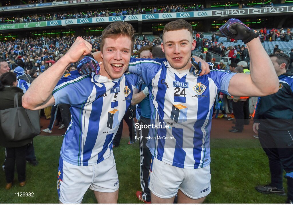 17 March 2016; Robbie McDaid, left, and Cathal Flaherty, Ballyboden St Endas, celebrates their side's victory. AIB GAA Football All-Ireland Senior Club Championship Final, Ballyboden St Endas, Dublin, v Castlebar Mitchels, Mayo. Croke Park, Dublin. Picture credit: Stephen McCarthy / SPORTSFILE