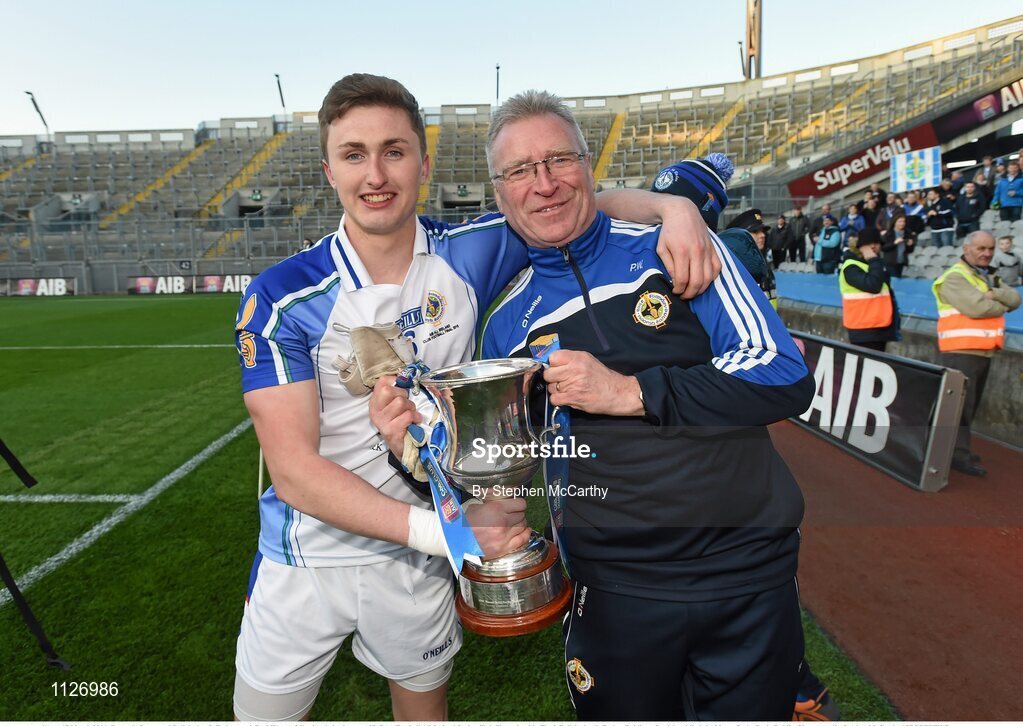 17 March 2016; Darragh Gogan and Ballyboden St Endas coach Paul Waters following their victory. AIB GAA Football All-Ireland Senior Club Championship Final, Ballyboden St Endas, Dublin, v Castlebar Mitchels, Mayo. Croke Park, Dublin. Picture credit: Stephen McCarthy / SPORTSFILE