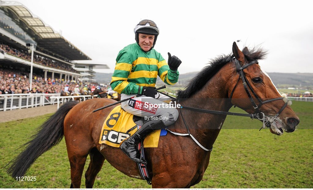 18 March 2016; Barry Geraghty celebrates after winning the JCB Triumph Hurdle on Ivanovich Gorbatov. Prestbury Park, Cheltenham, Gloucestershire, England. Picture credit: Seb Daly / SPORTSFILE