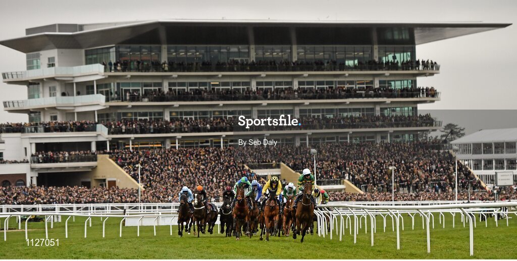 18 March 2016; A general view of the field during the Vincent O'Brien County Handicap Hurdle. Prestbury Park, Cheltenham, Gloucestershire, England. Picture credit: Seb Daly / SPORTSFILE