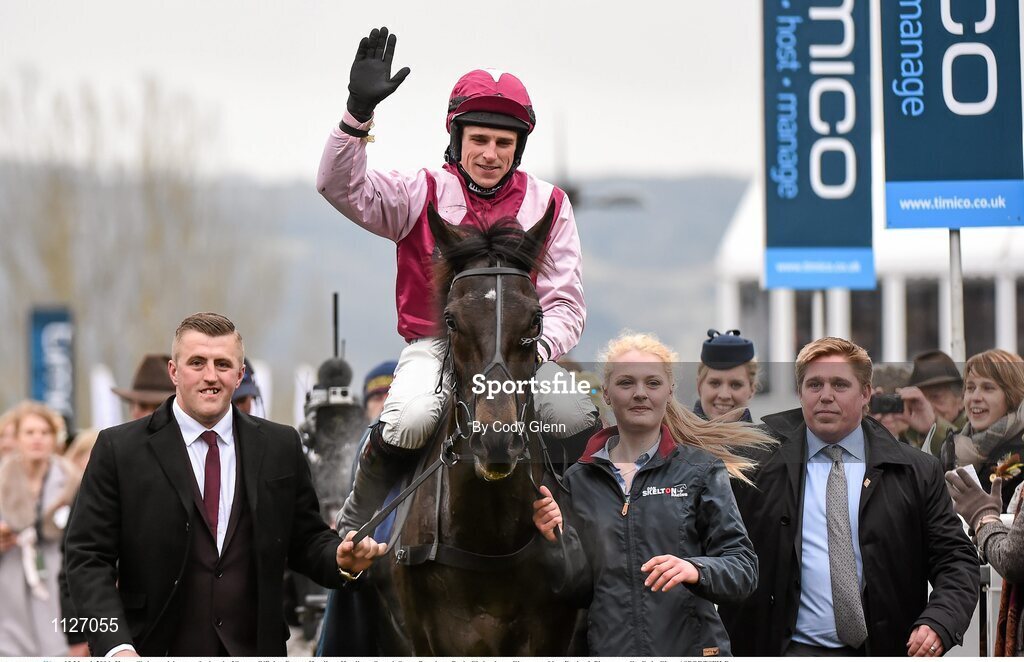 18 March 2016; Harry Skelton celebrates winning the Vincent O'Brien County Handicap Hurdle on Superb Story. Prestbury Park, Cheltenham, Gloucestershire, England. Picture credit: Cody Glenn / SPORTSFILE