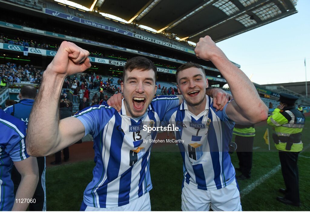 17 March 2016; Sam Molony, left, and Aran Waters, Ballyboden St Endas, celebrates their side's victory. AIB GAA Football All-Ireland Senior Club Championship Final, Ballyboden St Endas, Dublin, v Castlebar Mitchels, Mayo. Croke Park, Dublin. Picture credit: Stephen McCarthy / SPORTSFILE