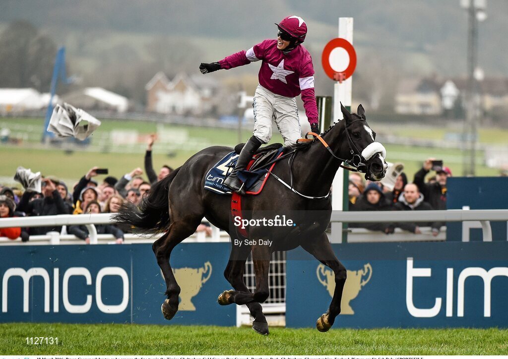 18 March 2016; Bryan Cooper celebrates as he crosses the line to win the Timico Cheltenham Gold Cup on Don Cossack. Prestbury Park, Cheltenham, Gloucestershire, England. Picture credit: Seb Daly / SPORTSFILE
