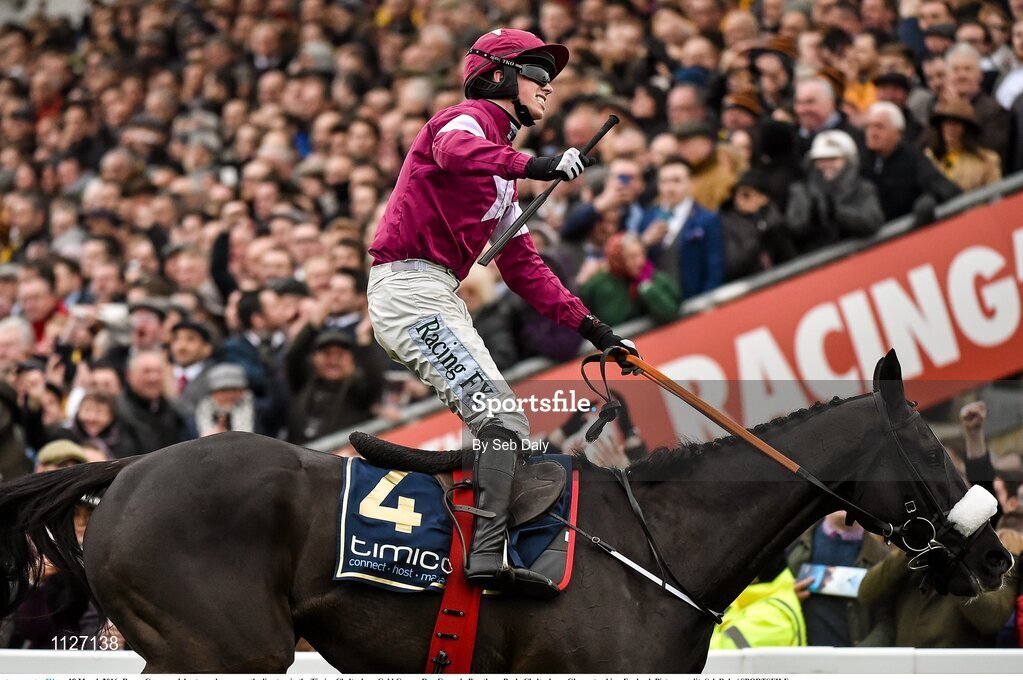 18 March 2016; Bryan Cooper celebrates as he crosses the line to win the Timico Cheltenham Gold Cup on Don Cossack. Prestbury Park, Cheltenham, Gloucestershire, England. Picture credit: Seb Daly / SPORTSFILE