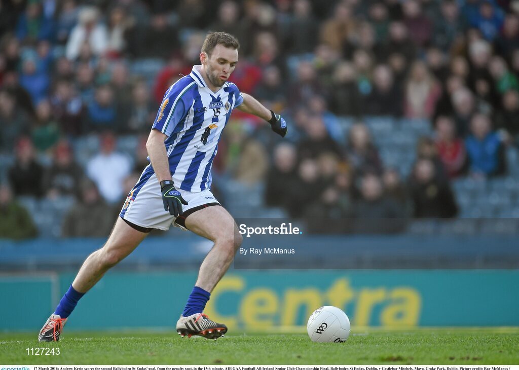 17 March 2016; Andrew Kerin scores the second Ballyboden St Endas' goal, from the penalty spot, in the 15th minute. AIB GAA Football All-Ireland Senior Club Championship Final, Ballyboden St Endas, Dublin, v Castlebar Mitchels, Mayo. Croke Park, Dublin. Picture credit: Ray McManus / SPORTSFILE