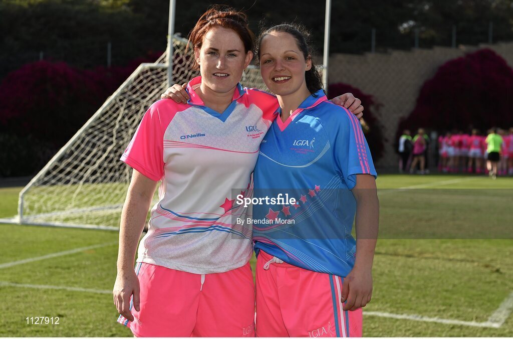 19 March 2016; Laois Ladies Football All Stars, from left, Maggie Murphy and Ciamh Dollard, after the game. TG4 Ladies Football All-Star Tour, 2014 All Stars v 2015 All Stars. University of San Diego, Torero Stadium, San Diego, California, USA. Picture credit: Brendan Moran / SPORTSFILE