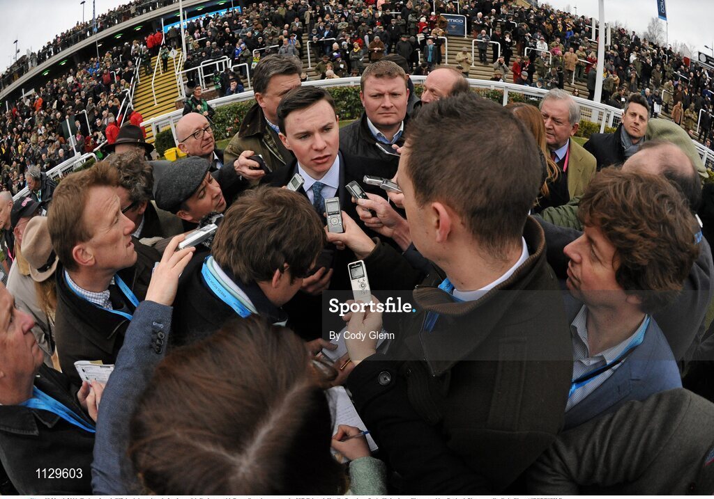 18 March 2016; Trainer Joseph O'Brien is interviewed after Ivanovich Gorbatov, with Barry Geraghty up, won the JCB Triumph Hurdle. Prestbury Park, Cheltenham, Gloucestershire, England. Picture credit: Cody Glenn / SPORTSFILE
