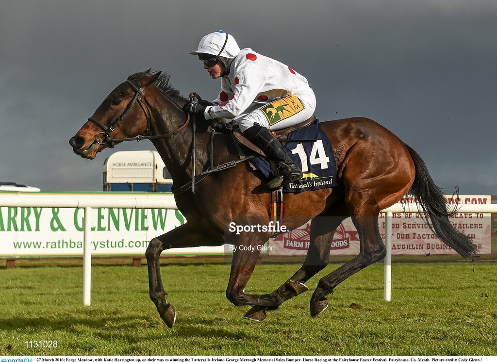 27 March 2016; Forge Meadow, with Katie Harrington up, on their way to winning the Tattersalls Ireland George Mernagh Memorial Sales Bumper. Horse Racing at the Fairyhouse Easter Festival. Fairyhouse, Co. Meath. Picture credit: Cody Glenn / SPORTSFILE