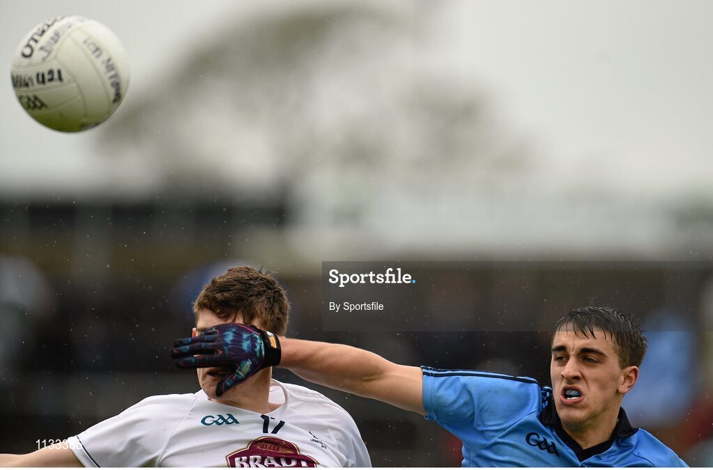 2 April 2016; Chris Salllier, Dublin, in action against Mark Hyland, Kildare. EirGrid Leinster GAA Football U21 Championship Final, Dublin v Kildare. Páirc Táilteann, Navan, Co. Meath. Photo by Sportsfile