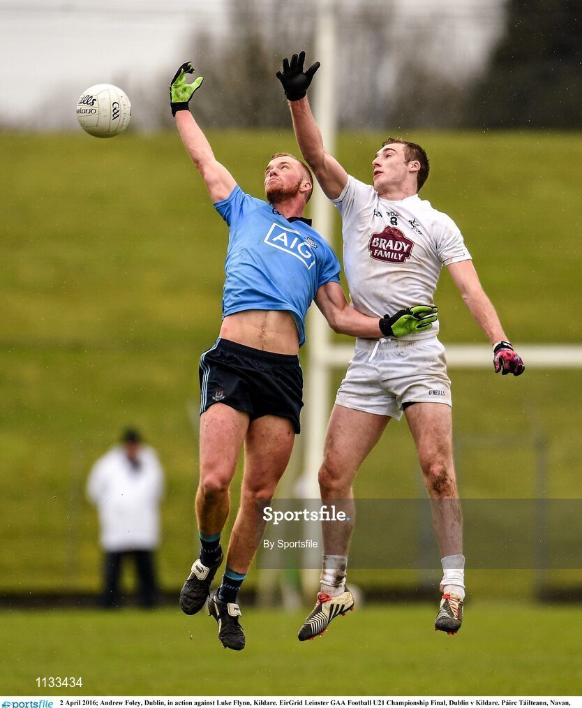 2 April 2016; Andrew Foley, Dublin, in action against Luke Flynn, Kildare. EirGrid Leinster GAA Football U21 Championship Final, Dublin v Kildare. Páirc Táilteann, Navan, Co. Meath. Photo by Sportsfile