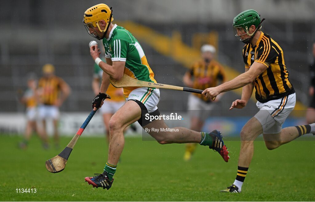 3 April 2016; Shane Kinsella, Offaly, in action against Shane Prendergast, Kilkenny. Allianz Hurling League Division 1, Quarter-Final, Kilkenny v Offaly. Nowlan Park, Kilkenny. Picture credit: Ray McManus / SPORTSFILE