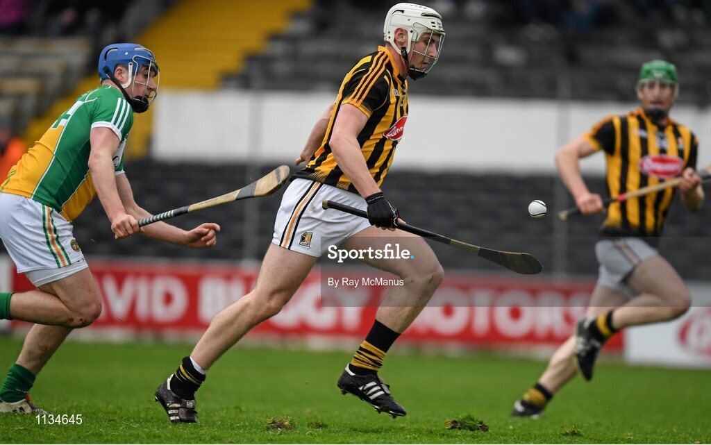 3 April 2016; Liam Blanchfield races clear of Dan Kelleher, Offaly, on his way to scoring the sixth Kilkenny goal. Allianz Hurling League Division 1 Quarter-Final, Kilkenny v Offaly. Nowlan Park, Kilkenny. Picture credit: Ray McManus / SPORTSFILE