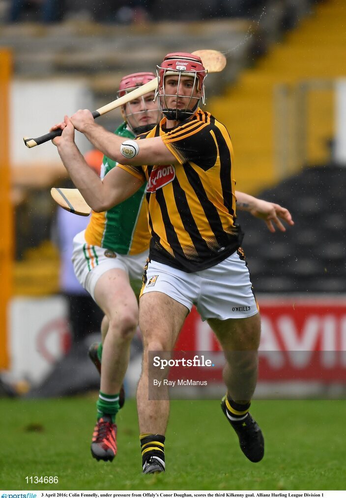 3 April 2016; Colin Fennelly, under pressure from Offaly's Conor Doughan, scores the third Kilkenny goal. Allianz Hurling League Division 1 Quarter-Final, Kilkenny v Offaly. Nowlan Park, Kilkenny. Picture credit: Ray McManus / SPORTSFILE