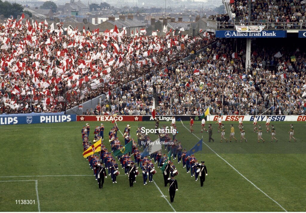 21 September 1986; The Kerry and Tyrone teams parade behind the Artane Boys Band before the All-Ireland Senior Football Championship final between Kerry and Tyrone in Croke Park, Dublin. Photo by Ray McManus/Sportsfile