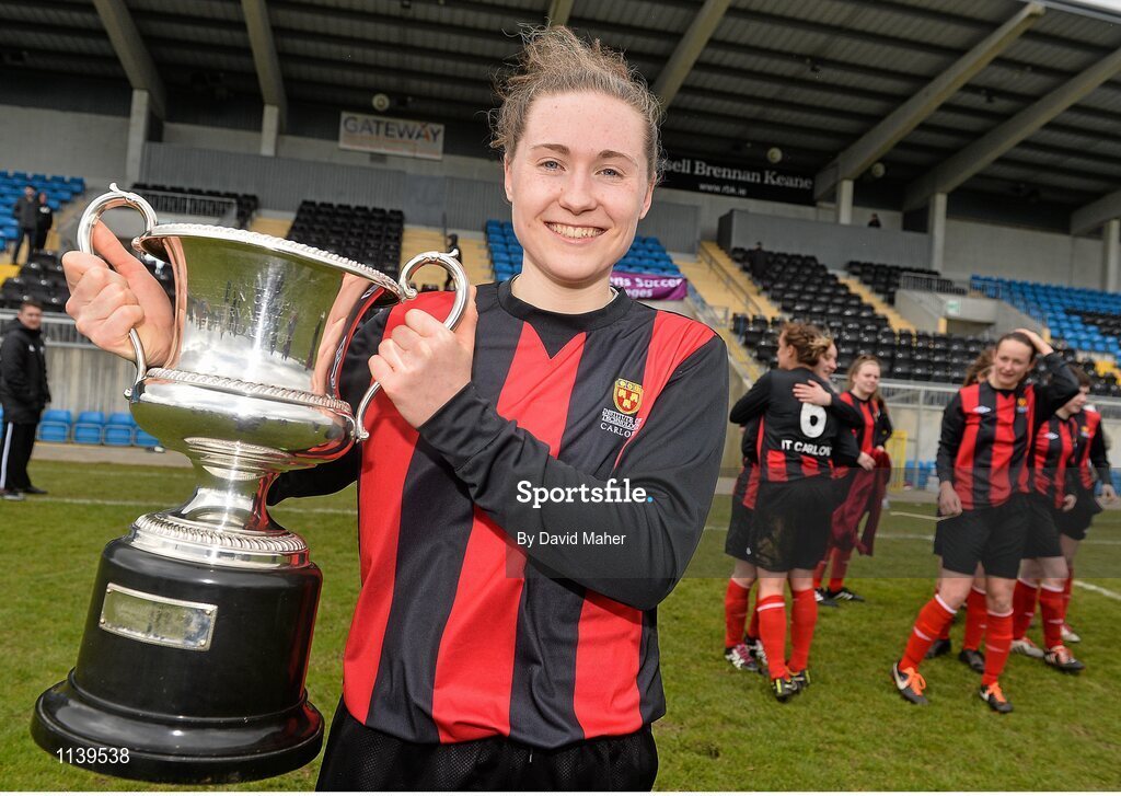 16 April 2016; Becky Cassin, IT Carlow, winning goalscorer, celebrates at the end of the game. WSCAI Intervarsities Cup Final, IT Carlow v IT Sligo. Athlone I.T., Athlone. Picture credit: David Maher / SPORTSFILE