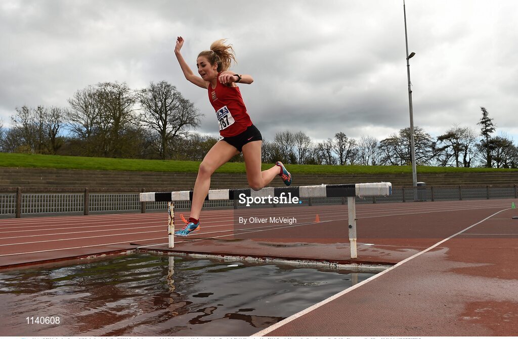 16 April 2016; Jessica Coyne, UCC, during the Ladies 3000M Steeplechase event. Irish Universities Athletic Association Track & Field Championships 2016, Day 1. Morton Stadium, Santry, Co. Dublin. Picture credit: Oliver McVeigh / SPORTSFILE