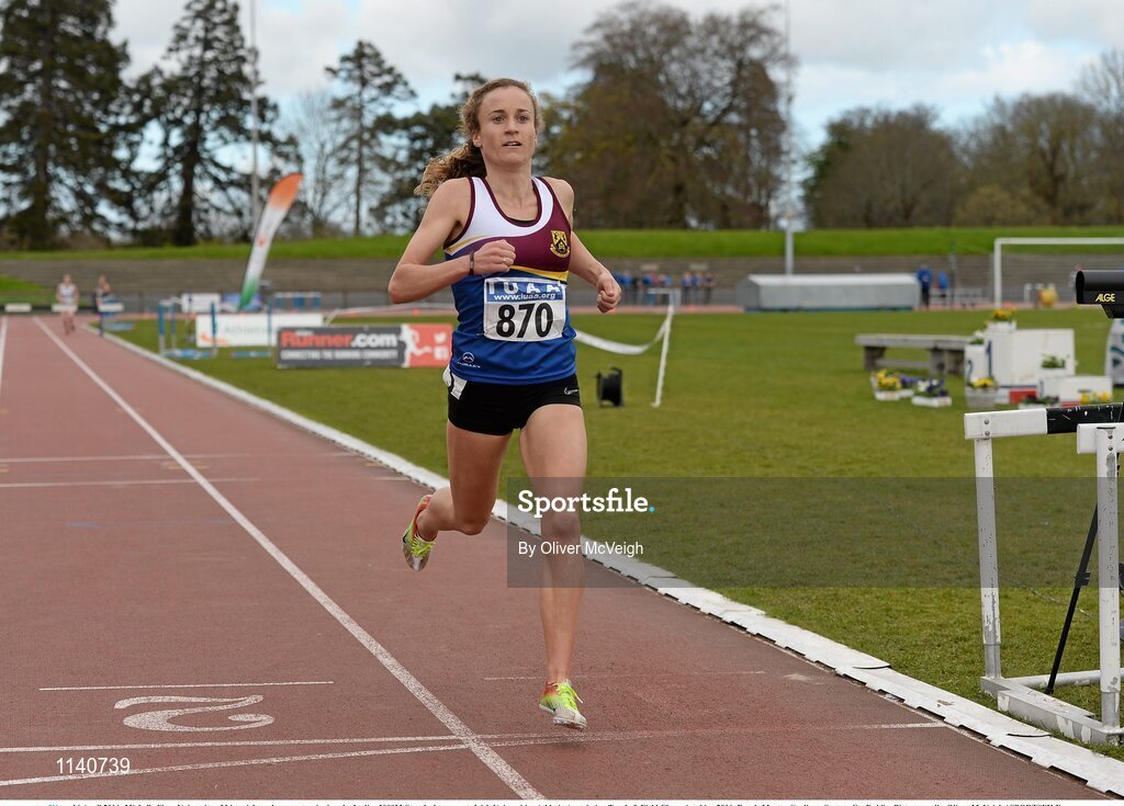 16 April 2016; Michelle Finn, University of Limerick, on her way to winning the Ladies 3000M Steeplechase event. Irish Universities Athletic Association Track & Field Championships 2016, Day 1. Morton Stadium, Santry, Co. Dublin. Picture credit: Oliver McVeigh / SPORTSFILE