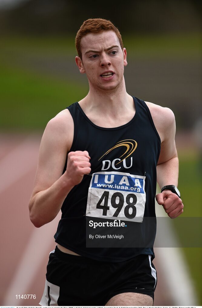 16 April 2016; Nicholas Dunphy, on his way to winning the Mens 3000K walk final. Irish Universities Athletic Association Track & Field Championships 2016, Day 1. Morton Stadium, Santry, Co. Dublin. Picture credit: Oliver McVeigh / SPORTSFILE