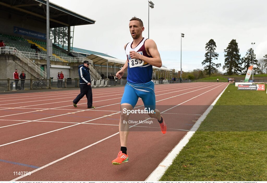 16 April 2016; Niall McCormack, University of Limerick, during the Mens 5000M event. Irish Universities Athletic Association Track & Field Championships 2016, Day 1. Morton Stadium, Santry, Co. Dublin. Picture credit: Oliver McVeigh / SPORTSFILE