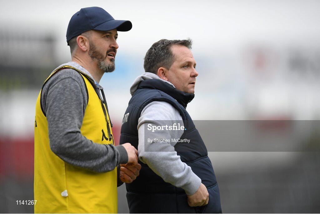 17 April 2016; Clare manager Davy Fitzgerald and selector Donal Og Cusack, left. Allianz Hurling League Division 1 Semi-Final, Kilkenny v Clare. Semple Stadium, Thurles, Co. Tipperary. Picture credit: Stephen McCarthy / SPORTSFILE