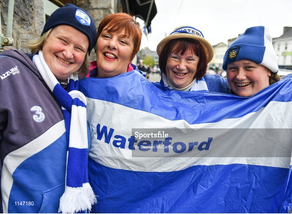 1 May 2016; Aoife Phelan, Lucy O'Keeffe, Bridget Phelan and Shelly Phelan, from Waterford City, ahead of the game. Allianz Hurling League Division 1 Final, Clare v Waterford, Semple Stadium, Thurles, Co. Tipperary. Picture credit: Stephen McCarthy / SPORTSFILE