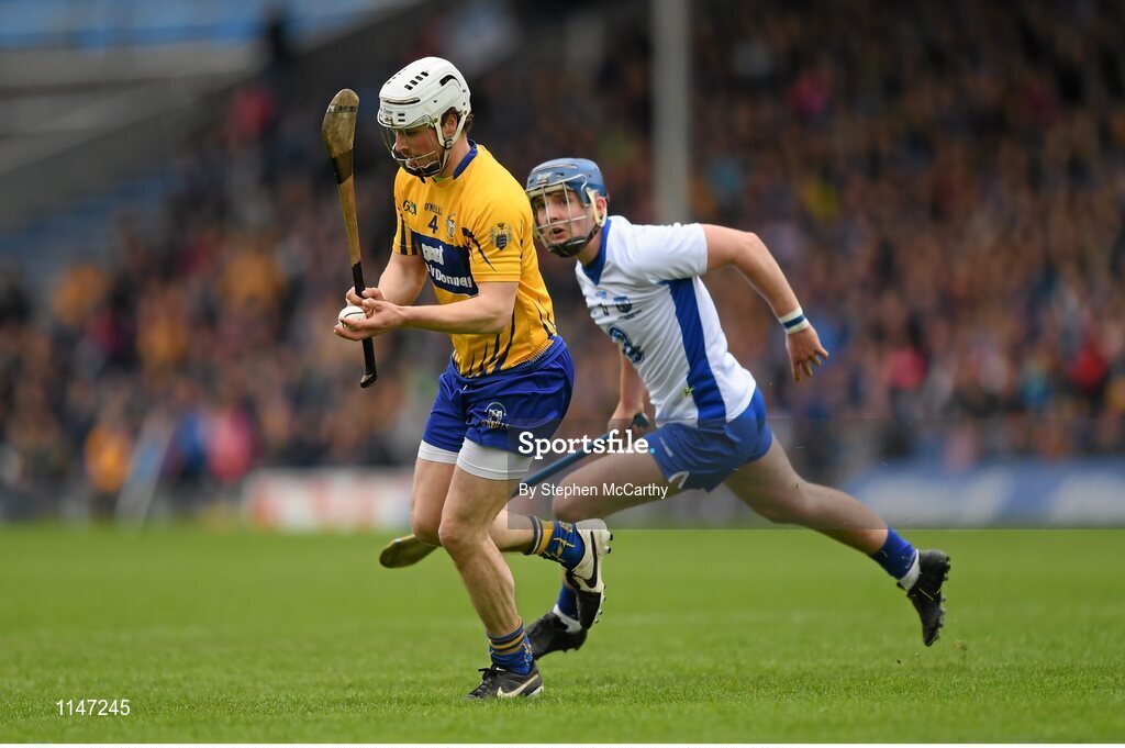 1 May 2016; Pat O'Connor, Clare, in action against Patrick Curran, Waterford. Allianz Hurling League Division 1 Final, Clare v Waterford. Semple Stadium, Thurles, Co. Tipperary. Picture credit: Stephen McCarthy / SPORTSFILE