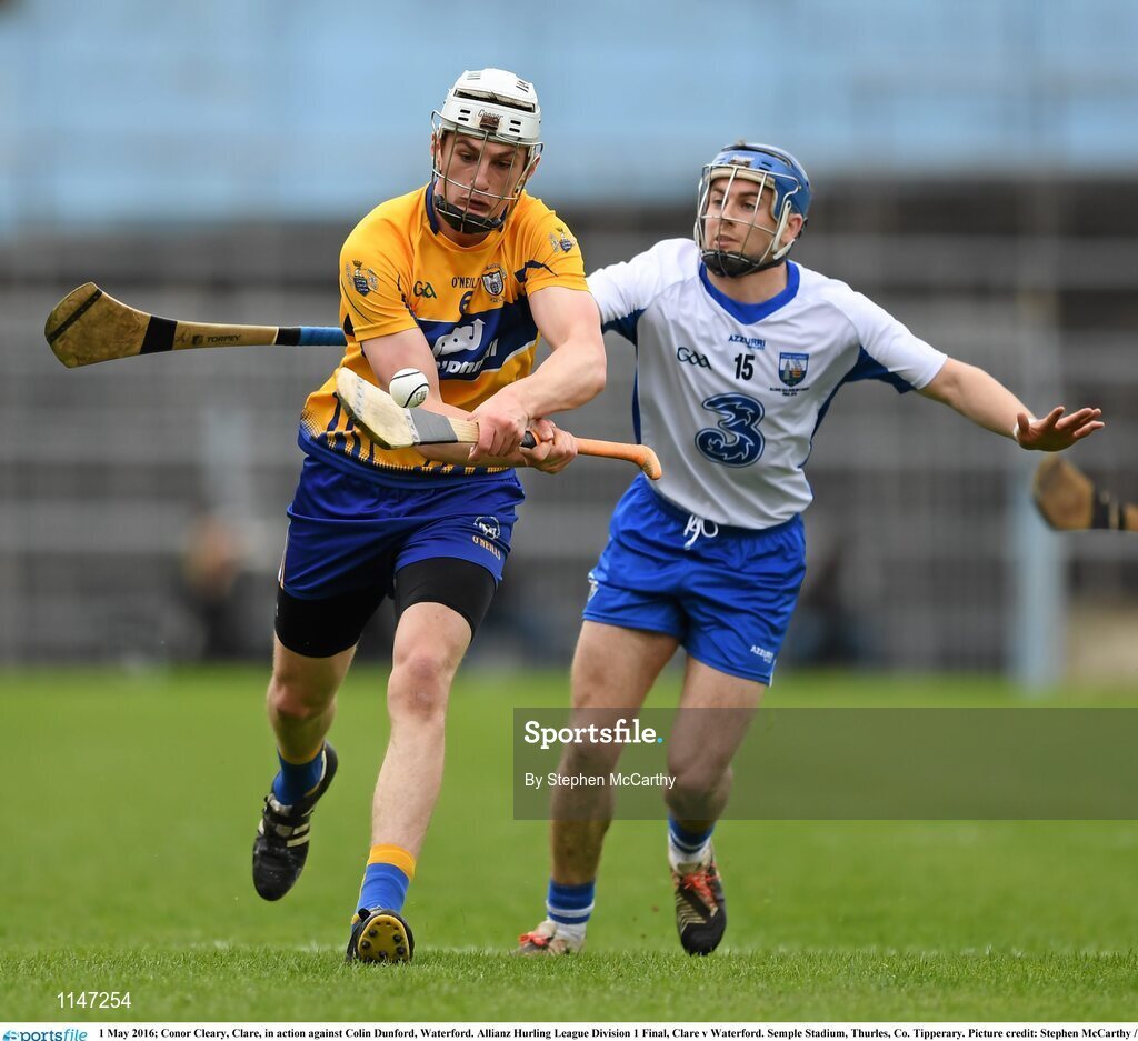 1 May 2016; Conor Cleary, Clare, in action against Colin Dunford, Waterford. Allianz Hurling League Division 1 Final, Clare v Waterford. Semple Stadium, Thurles, Co. Tipperary. Picture credit: Stephen McCarthy / SPORTSFILE