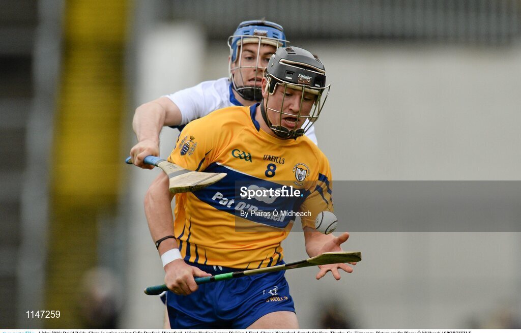 1 May 2016; David Reidy, Clare, in action against Colin Dunford, Waterford. Allianz Hurling League Division 1 Final, Clare v Waterford. Semple Stadium, Thurles, Co. Tipperary. Picture credit: Piaras Ó Mídheach / SPORTSFILE