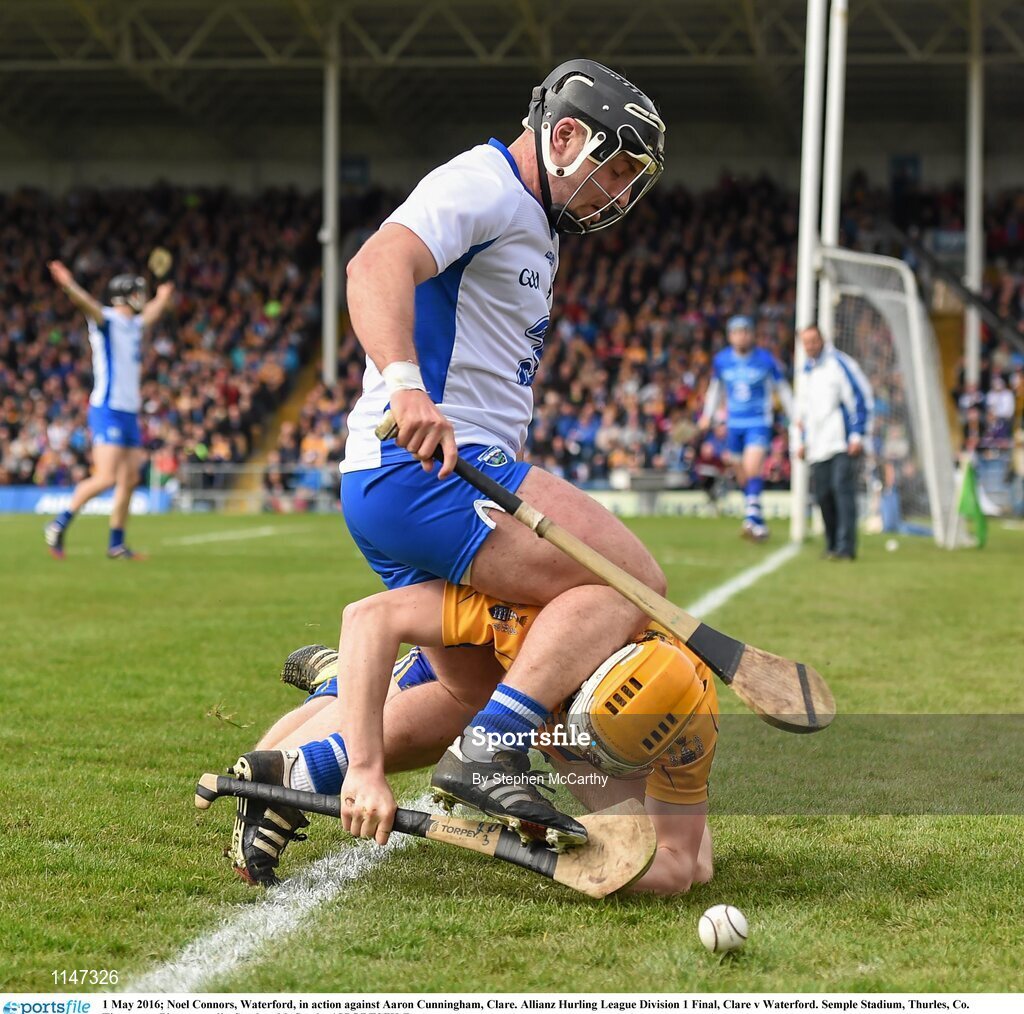 1 May 2016; Noel Connors, Waterford, in action against Aaron Cunningham, Clare. Allianz Hurling League Division 1 Final, Clare v Waterford. Semple Stadium, Thurles, Co. Tipperary. Picture credit: Stephen McCarthy / SPORTSFILE