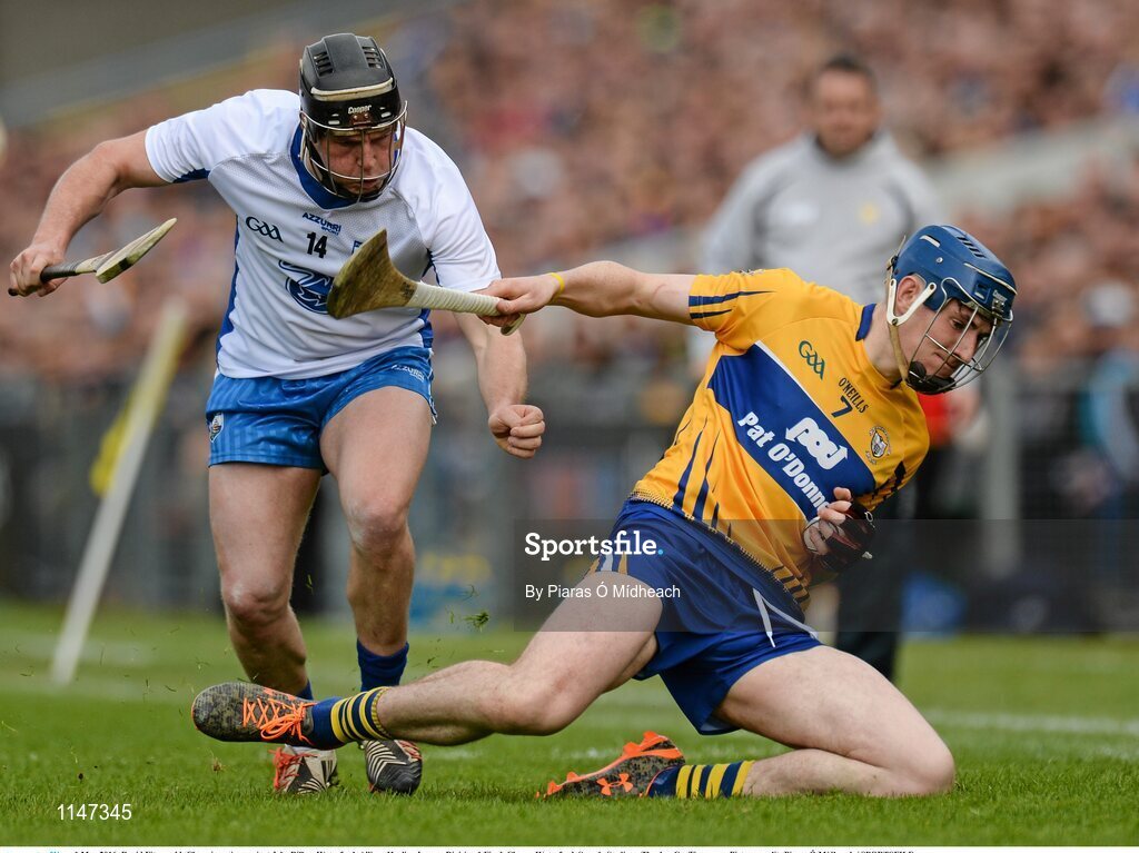 1 May 2016; David Fitzgerald, Clare, in action against Jake Dillon, Waterford. Allianz Hurling League Division 1 Final, Clare v Waterford. Semple Stadium, Thurles, Co. Tipperary. Picture credit: Piaras Ó Mídheach / SPORTSFILE