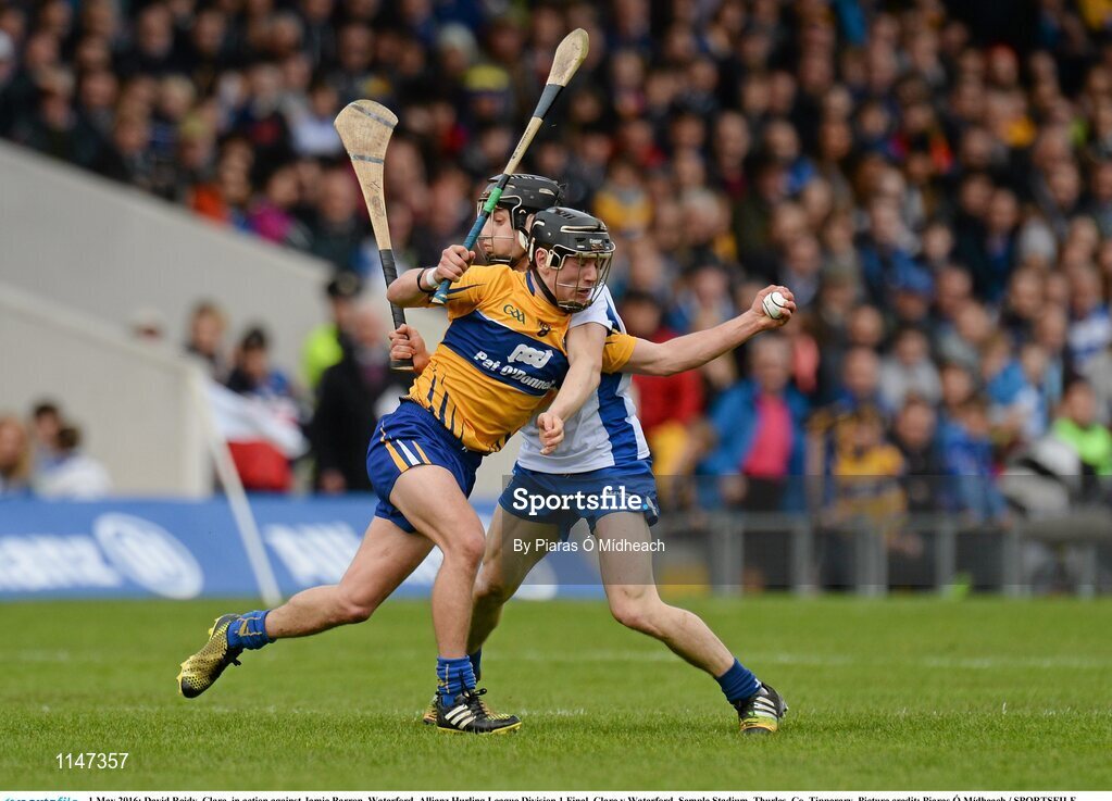 1 May 2016; David Reidy, Clare, in action against Jamie Barron, Waterford. Allianz Hurling League Division 1 Final, Clare v Waterford. Semple Stadium, Thurles, Co. Tipperary. Picture credit: Piaras Ó Mídheach / SPORTSFILE