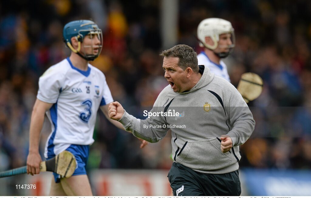 1 May 2016; Clare manager Davy Fitzgerald encourages his players as they leave the field ahead of extra-time. Allianz Hurling League Division 1 Final, Clare v Waterford. Semple Stadium, Thurles, Co. Tipperary. Picture credit: Piaras Ó Mídheach / SPORTSFILE