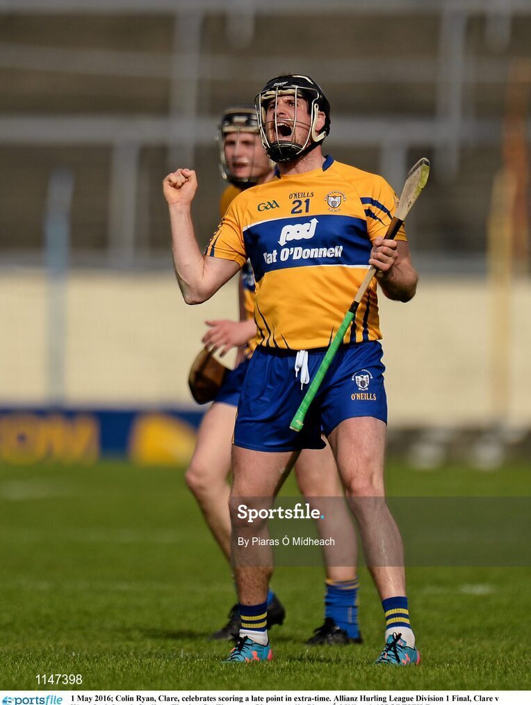 1 May 2016; Colin Ryan, Clare, celebrates scoring a late point in extra-time. Allianz Hurling League Division 1 Final, Clare v Waterford. Semple Stadium, Thurles, Co. Tipperary. Picture credit: Piaras Ó Mídheach / SPORTSFILE