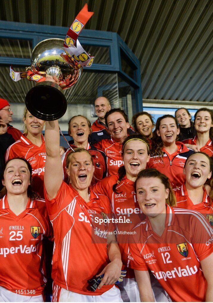 7 May 2016; Cork captain Deidre O'Reilly lifts the cup after the game. Lidl Ladies Football National League, Division 1, Final, Mayo v Cork. Parnell Park, Dublin. Picture credit: Piaras Ó Mídheach / SPORTSFILE