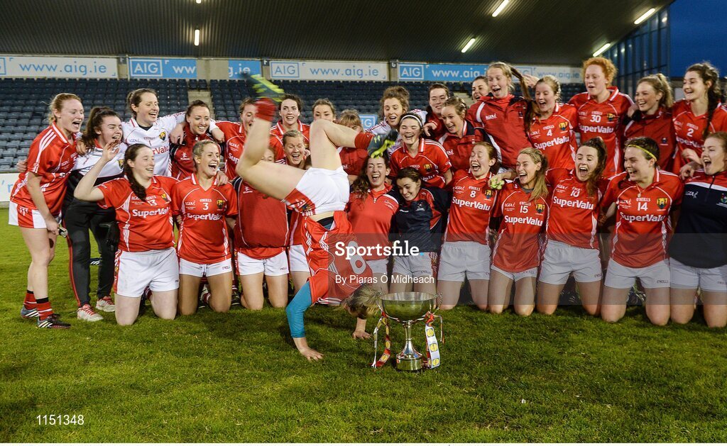 7 May 2016; Cork's Briege Corkery and her team-mates celebrate after the game. Lidl Ladies Football National League, Division 1, Final, Mayo v Cork. Parnell Park, Dublin. Picture credit: Piaras Ó Mídheach / SPORTSFILE