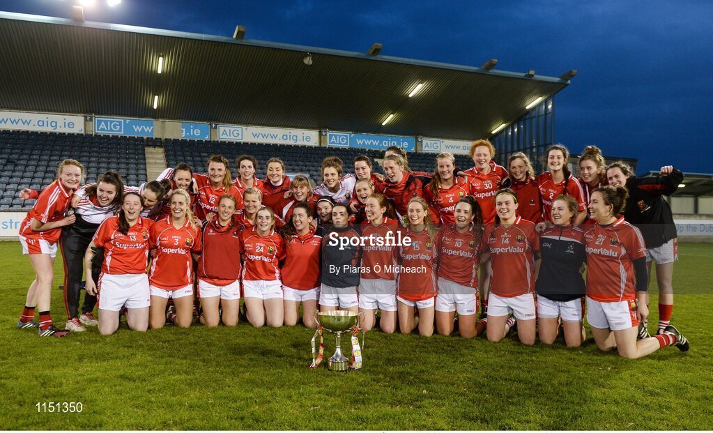 7 May 2016; Cork players celebrate with the cup after the game. Lidl Ladies Football National League, Division 1, Final, Mayo v Cork. Parnell Park, Dublin. Picture credit: Piaras Ó Mídheach / SPORTSFILE