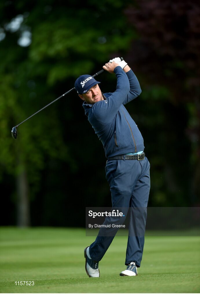 18 May 2016; Graeme McDowell plays his second shot on the 10th fairway during the Dubai Duty Free Irish Open Golf Championship Pro-Am at The K Club in Straffan, Co. Kildare. Photo by Diarmuid Greene/Sportsfile