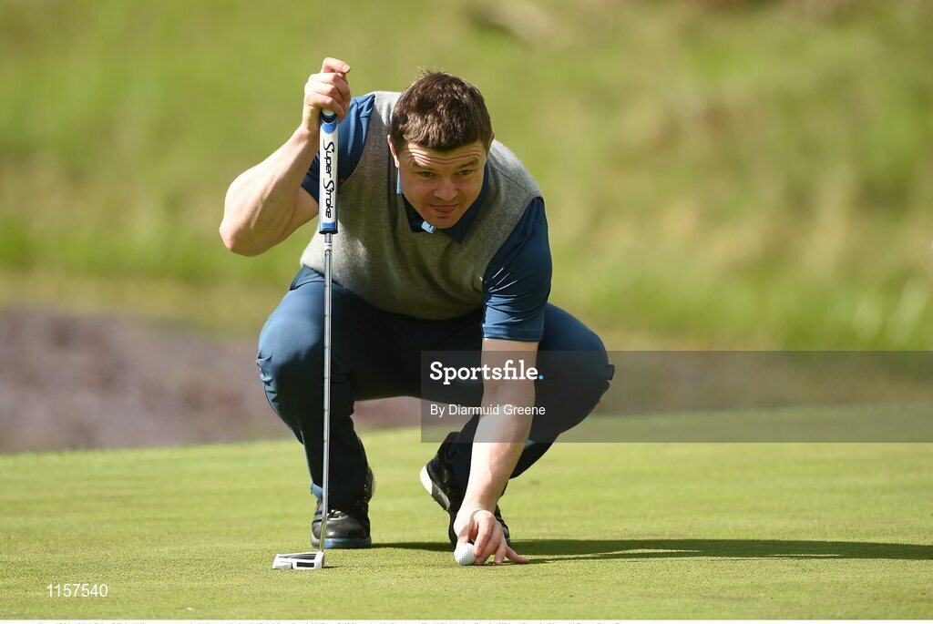 18 May 2016; Brian O'Driscoll lines up a putt on the 11th green during the Dubai Duty Free Irish Open Golf Championship Pro-Am at The K Club in Straffan, Co. Kildare. Photo by Diarmuid Greene/Sportsfile