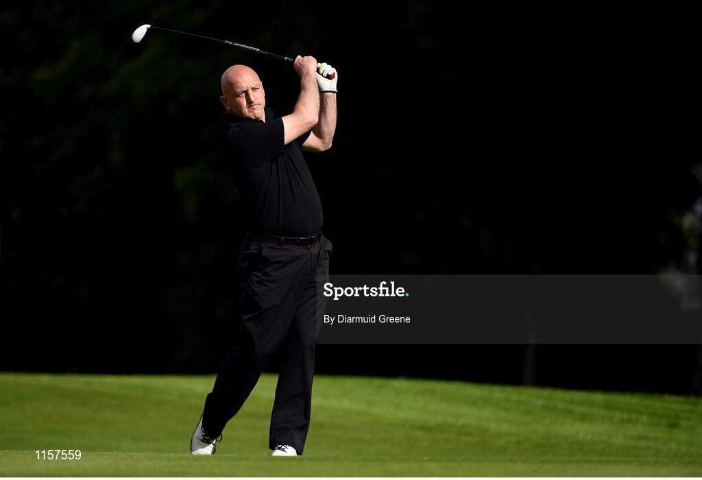 18 May 2016; Keith Wood watches his 2nd shot from the 10th fairway during the Dubai Duty Free Irish Open Golf Championship Pro-Am at The K Club in Straffan, Co. Kildare. Photo by Diarmuid Greene/Sportsfile
