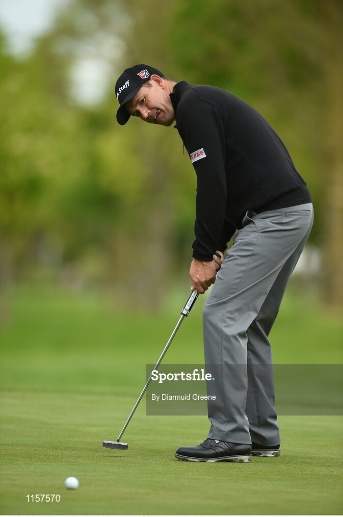 18 May 2016; Padraig Harrington putts on the 13th green during the Dubai Duty Free Irish Open Golf Championship Pro-Am at The K Club in Straffan, Co. Kildare. Photo by Diarmuid Greene/Sportsfile