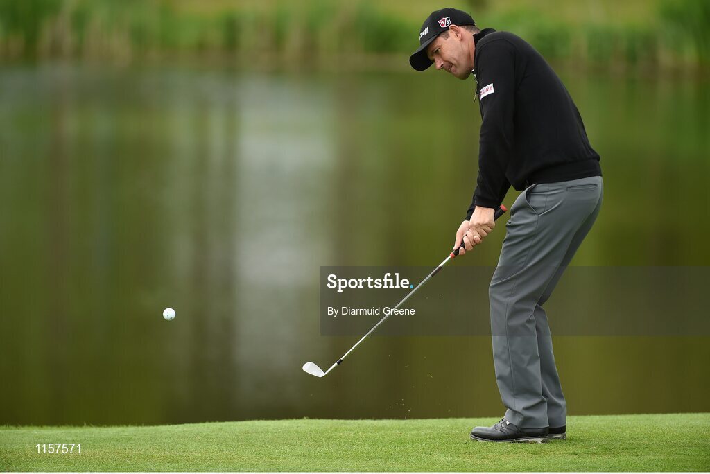 18 May 2016; Padraig Harrington chips onto the 13th green during the Dubai Duty Free Irish Open Golf Championship Pro-Am at The K Club in Straffan, Co. Kildare. Photo by Diarmuid Greene/Sportsfile
