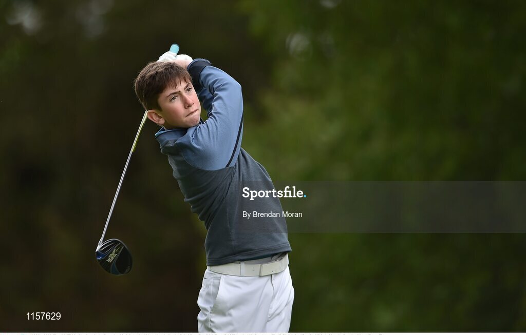 18 May 2016; Thirteen year old Tom McKibbin, from Antrim, who was invited to play in the Pro Am at the Dubai Duty Free Irish Open by golfer Rory McIlroy, on the 12th tee box during the Dubai Duty Free Irish Open Golf Championship Pro-Am at The K Club in Straffan, Co. Kildare. Photo by Brendan Moran/Sportsfile