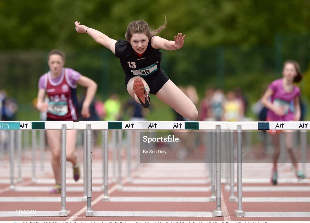 19 May 2016; Niamh O'Neill, Ballyhaunis CS, Co. Mayo, in action during the Junior Girls 75m Hurdles event. GloHealth Connacht Schools Track & Field Championships, Athlone I.T., Athlone, Co. Westmeath Photo by Seb Daly/Sportsfile