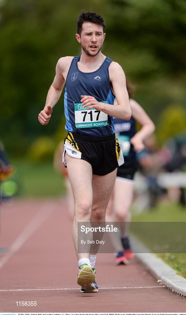 19 May 2016; Andrew Bell, St Geralds Castlebar, Co. Mayo, in action during the Senior Boys and Girls 3000m Walk event. GloHealth Connacht Schools Track & Field Championships, Athlone I.T., Athlone, Co. Westmeath Photo by Seb Daly/Sportsfile