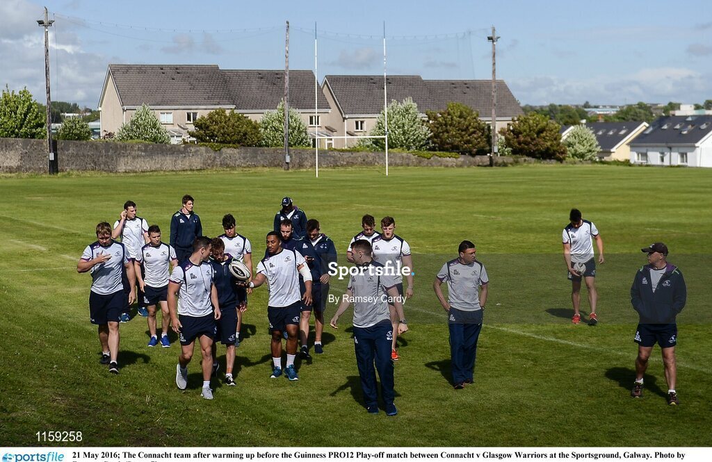 21 May 2016; The Connacht team after warming up before the Guinness PRO12 Play-off match between Connacht v Glasgow Warriors at the Sportsground, Galway. Photo by Ramsey Cardy/Sportsfile