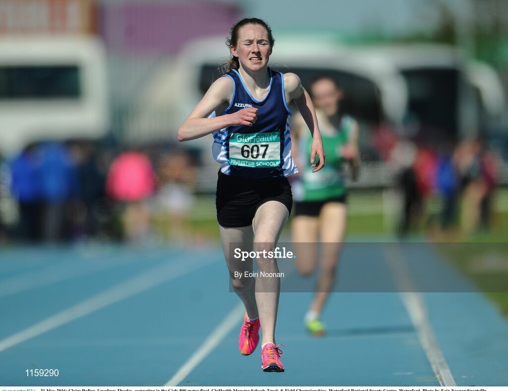 21 May 2016; Claire Rafter, Ursulines Thurles, competing in the Girls 800 meter final. GloHealth Munster Schools Track & Field Championships, Waterford Regional Sports Centre, Waterford. Photo by Eoin Noonan/Sportsfile