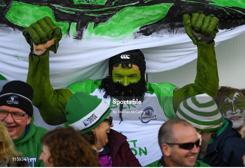 21 May 2016; A Connacht supporter urges on his side ahead of the Guinness PRO12 Play-off match between Connacht and Glasgow Warriors at the Sportsground in Galway. Photo by Stephen McCarthy/Sportsfile