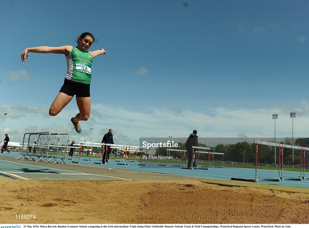 21 May 2016; Moira Barrett, Bandon Grammer School, competing in the Girls intermediate Triple Jump Final. GloHealth Munster Schools Track & Field Championships, Waterford Regional Sports Centre, Waterford. Photo by Eóin Noonan/Sportsfile