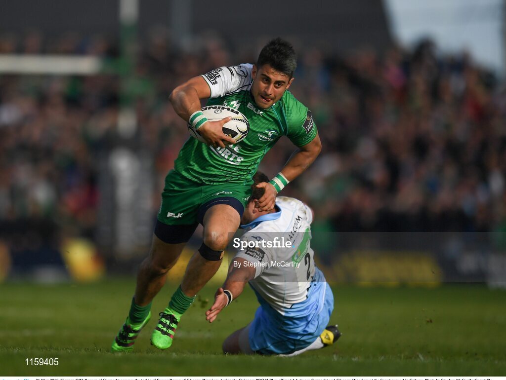 21 May 2016; Tiernan O'Halloran of Connacht escapes the tackle of Fraser Brown of Glasgow Warriors during the Guinness PRO12 Play-off match between Connacht and Glasgow Warriors at the Sportsground in Galway. Photo by Stephen McCarthy/Sportsfile